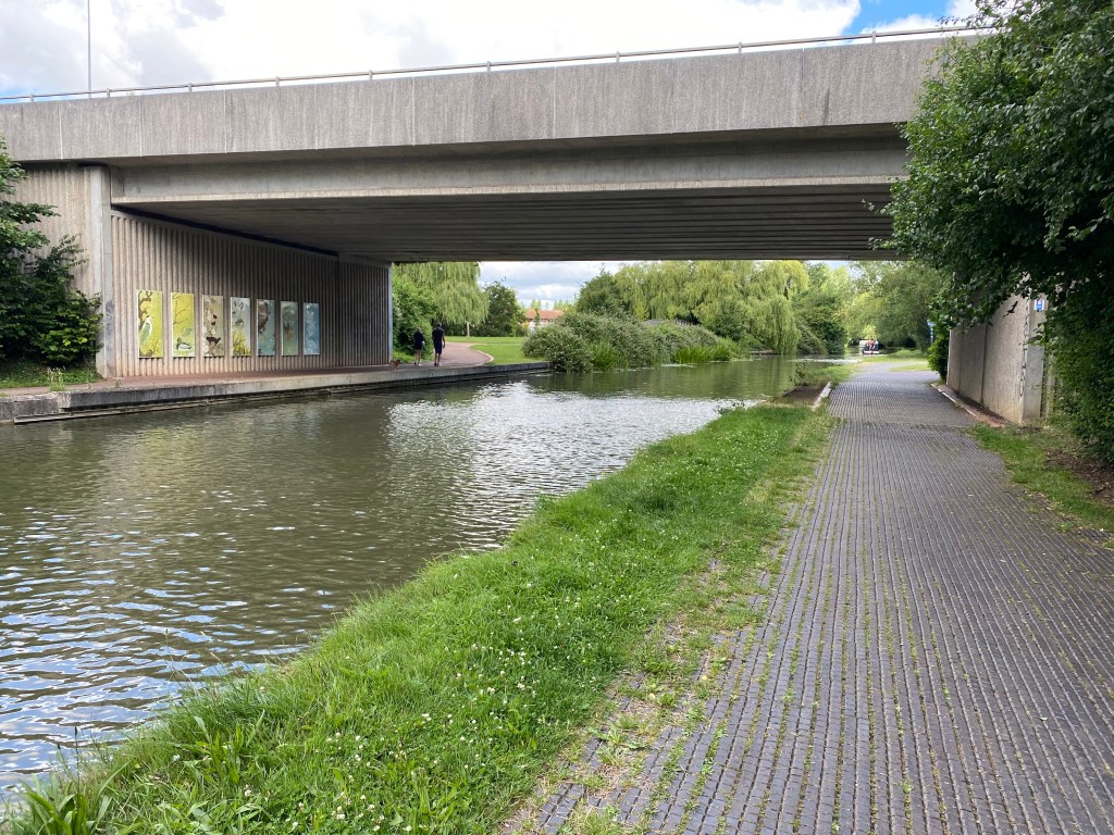 Keep straight on with the canal to your left. This is a towpath, the Grand Union Boardwalk, and cycle route 6. We stayed on this path for quite a ways. At the end of the boardwalk turn left.