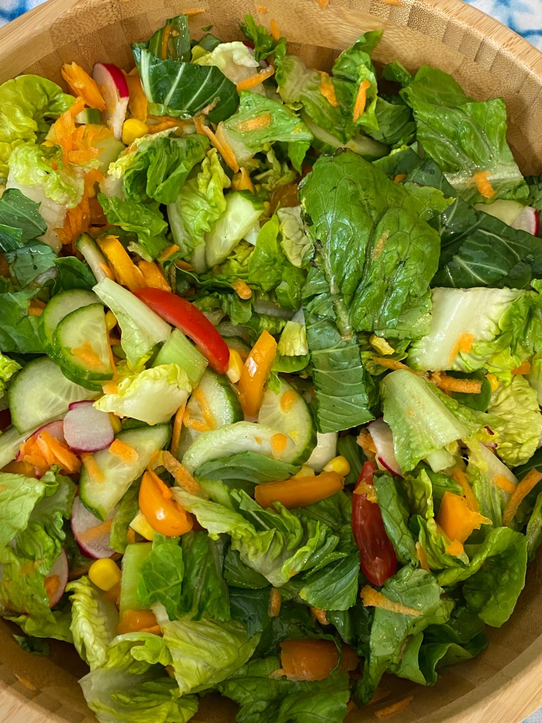 Lunchtime was salad. My husband had headed out for a short walk so I decided to prepare a salad. I was out of peppers so it wasn’t quite my typical salad .