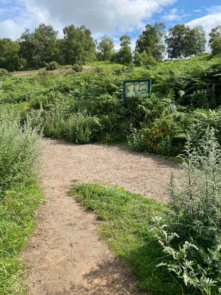 Just keep straight until you come to the junction shown below. The sign you can see is a map of Rammamere SSSI. This is important because that map is how we chose the first half of this little walk. We will be following the perimeter of Rammamere as outlined on the map. I would give you the up close picture but between fade and graffiti the picture is too hard to see.