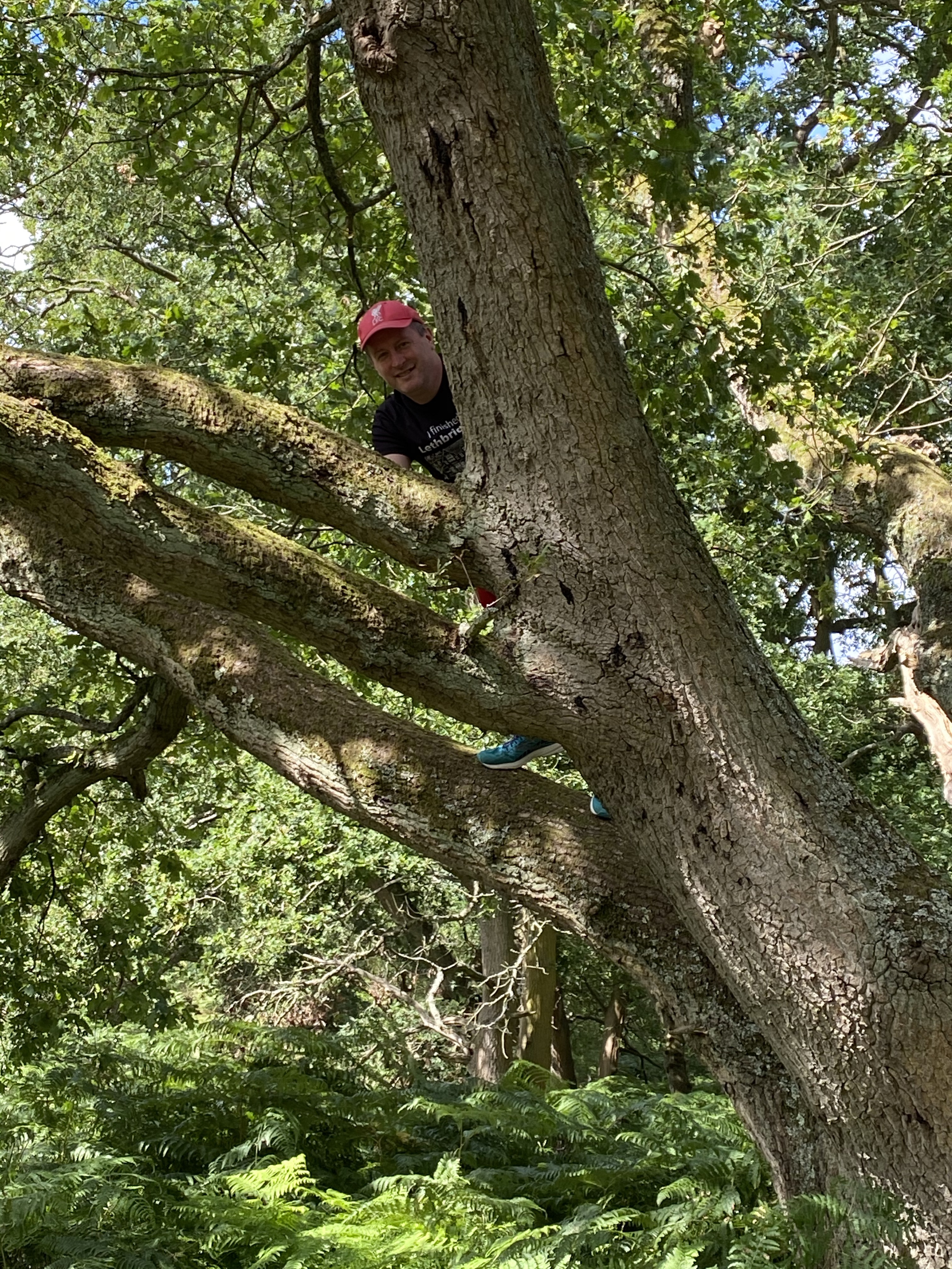 Along the way we found a fabulous tree that just screamed out to be climbed. As I have injured my hip (why this is a short walk), it was my husband that got to climb up the tree.