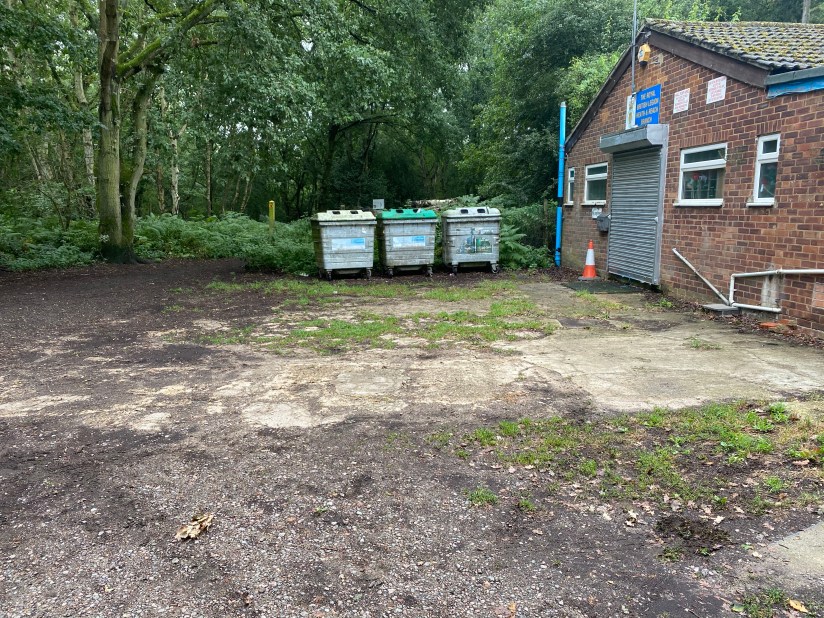 Make your way across the carpark to the path back into the trees. We turned right and then shortly on left into the first turning for Bakers Wood. Continue on this path until you come to a junction with a left / right option and turn right. This is the one part that leads out of Rushmere down to the British Legion building and then back into Rushmere when you go down the footpath next the the bins. I know….such picturesque bins they are!
