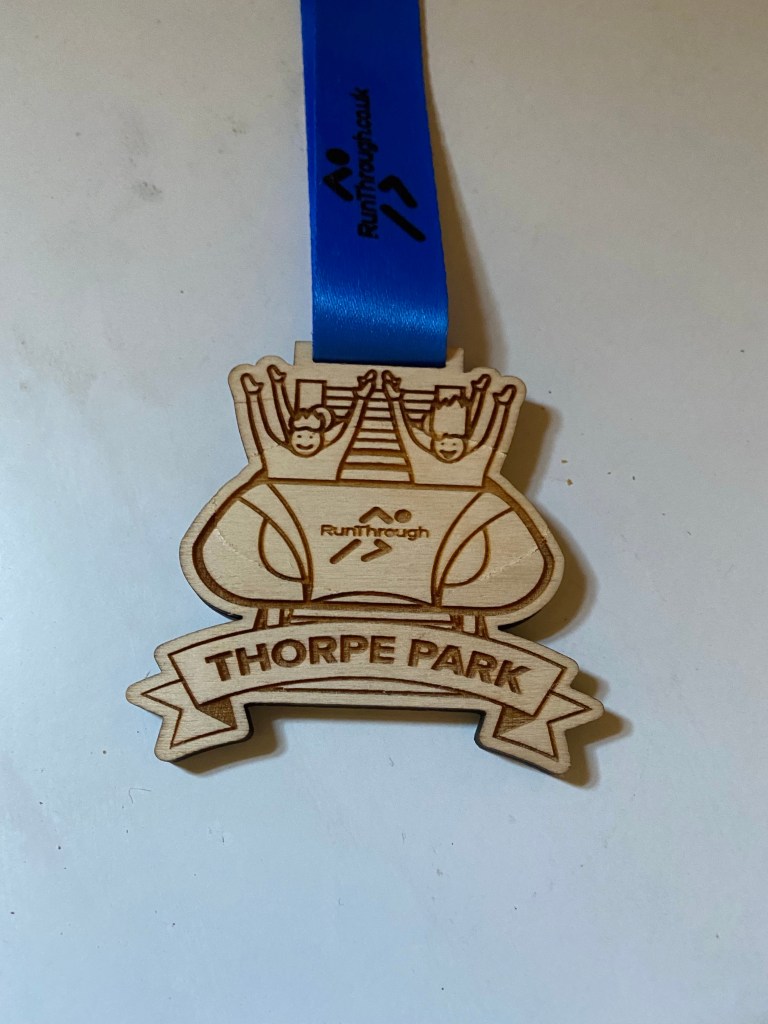 Thorpe Park is an amusement park with excellent roller coasters! They had 5 or 10 k run options so we chose 5k and convinced all the kids to do it with us so we could all have passes for the park itself after. I had hurt my hip and ankle a few days before so this time I just walked. I am so glad I walked and I would have been dead on my feet waiting for rides but all was good since I took it easy. Joey walked with me and we were the last two 5k people to finish.