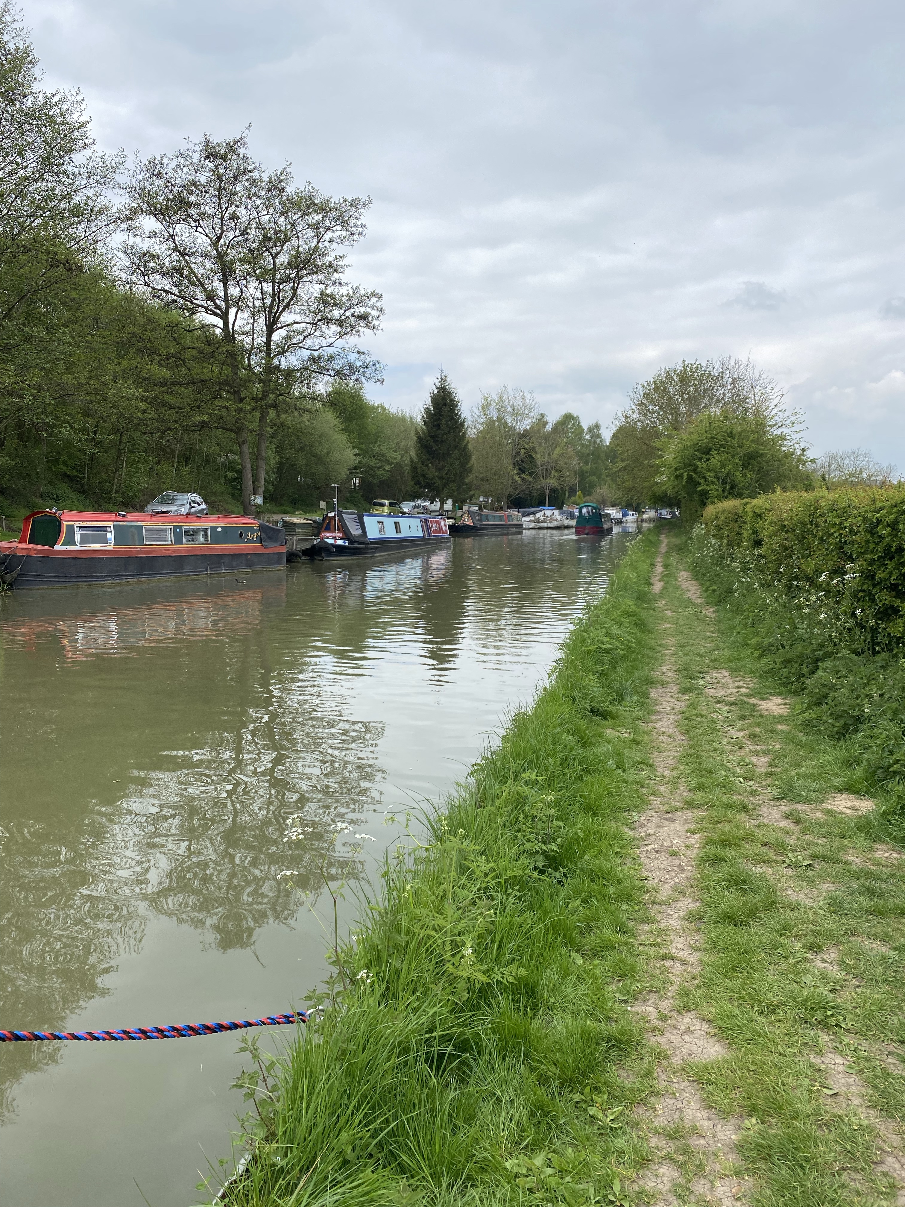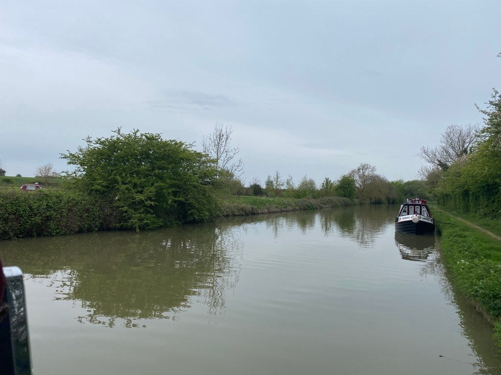 Checked the map to be sure of where I was and how much farther I needed to go and I set off again. Jimsonweed passed me when I moored up so I was to follow them the rest of the day. I think there was a bit of a breeze catching me. Not enough to cause havoc but enough that my boat struggled to get back going. it really wasn’t that much longer that I was on my own. About 4pm he called to find where I was and ran back to the boat. Jimsonweed was a bit confused as they saw Alan run south from Blisworth back toward Stoke Bruerne but now he was headed toward us from the north. We found a decent little spot near the village of Nether Heyford to moor for the week.