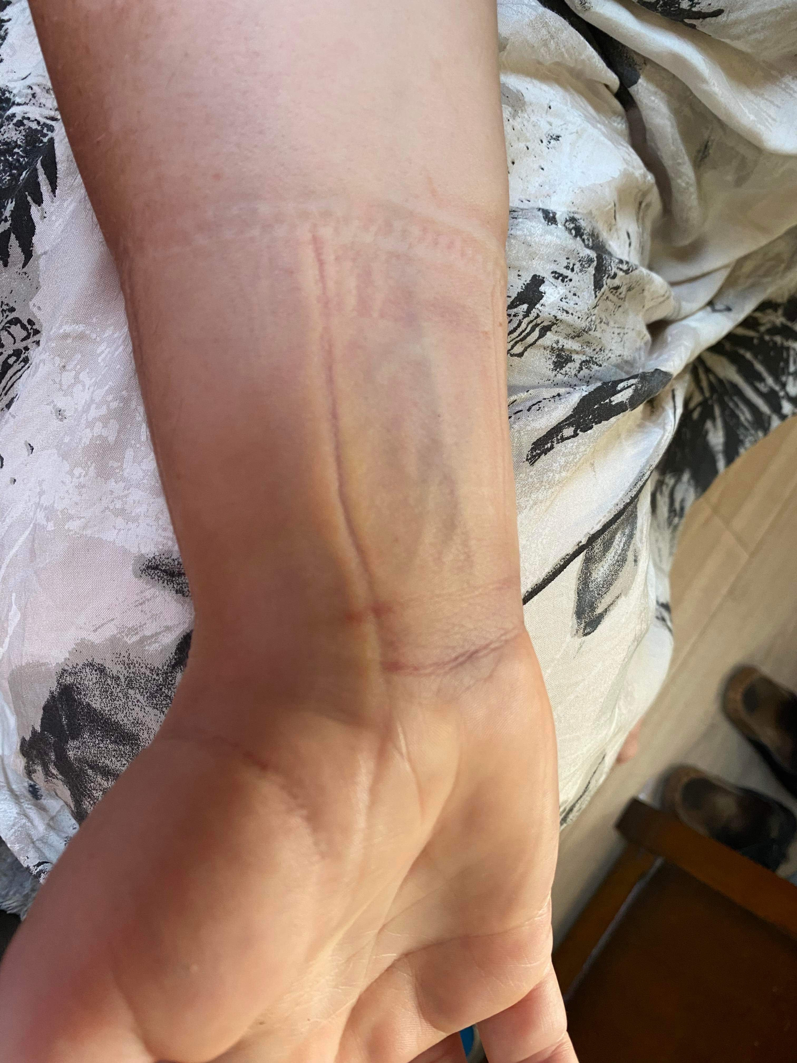 Almost 12 hours after the accident I finally got to the hospital and had my x-ray. I have a hairline fracture to the end of my right radius right in the joint. I was given a wrist brace that didn’t fit me by the Great Western Hospital in Swindon and told to wait for a call from the fracture clinic to see a specialist. No other instructions. No pain relief. Just an ill fitting brace that either gives no support or cuts off my circulation.